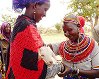 Livestock groups composed of widows from communities in conflict have integrated peacemaking. We facilitate conflict resolution, and each woman demonstrates reconciliation by passing on offspring to a woman of the ‘enemy’ tribe, which was responsible for killing her husband and stealing her livestock. Other times, a livestock grant is made to desperate households, such as victims of conflict who lost homes and livestock, and hungry moms who lost the ability to feed their family due to multi-year drought. |